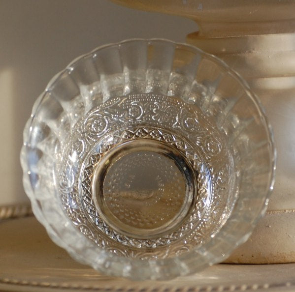 Vintage pre owned small optic glass candy dish. Beautiful dish. Optic glass and silver plate base. A little wear on the silver plate base.